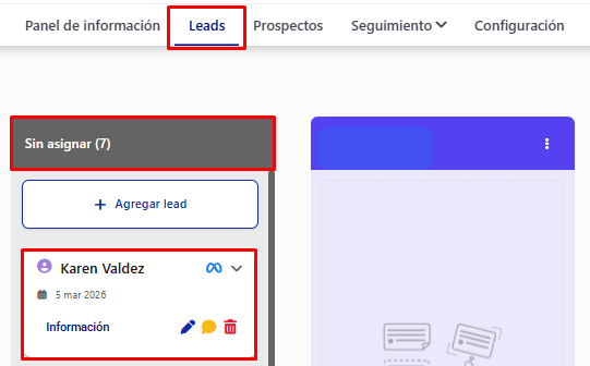 - Asignado: Es posible asignar un operador o administrador específico a un estudiante, solicitante o prospecto. Si se asigna un responsable, su nombre aparecerá en esta sección, lo que facilita el seguimiento y la gestión personalizada.