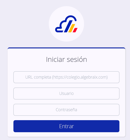 - Debes ingresar la URL de tu colegio (https://colegio.algebraix.com), tu Usuario y Contraseña.
