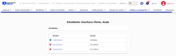 - Sin verificar: El padre o tutor aún no ha generado el código para compartir con el contacto.
