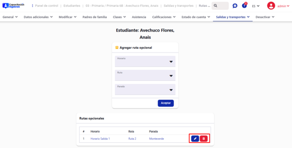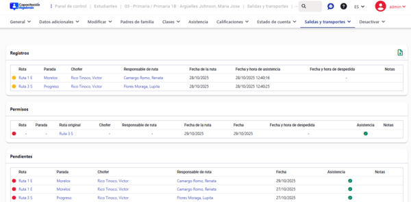 Consideración: Antes de comenzar, asegúrate de contar con una configuración general de salidas y transportes establecida por el colegio.